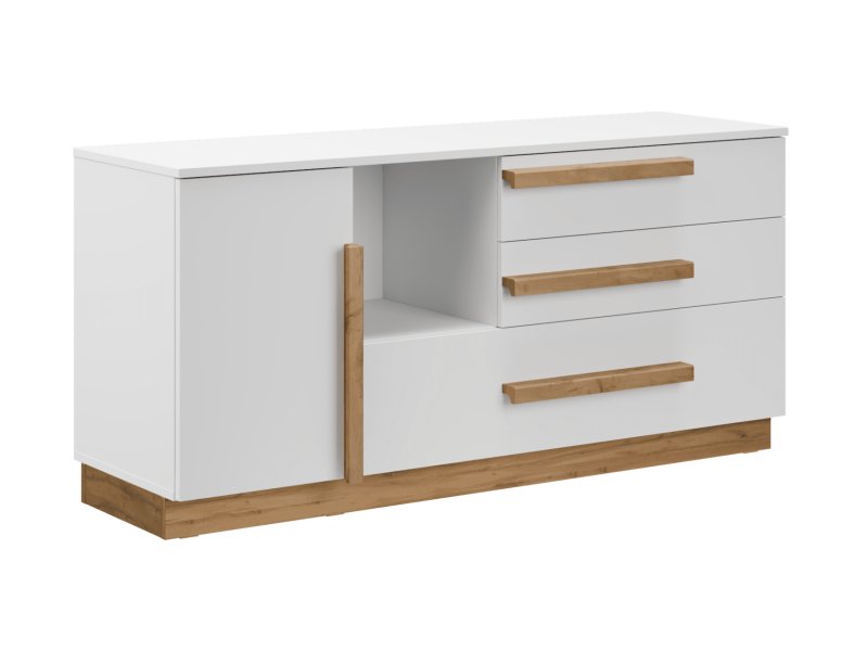 Сочетание цветов ЛДСП белый и дуб вотан создают гармонию в современной Гостиной. Центром притяжения станет универсальная тумба под телевизор. Благодаря разнообразию секций для хранения в ней можно разместить множество полезных мелочей. Фрезерованные ручки из массива дуба смотрятся эффектно и лаконично. Шариковые направляющие плавного хода у ящиков и петли с доводчиками обеспечивают комфортный функционал. Дополнить пространство в гостиной можно компактным комодом или стеллажом с открытыми полками.
