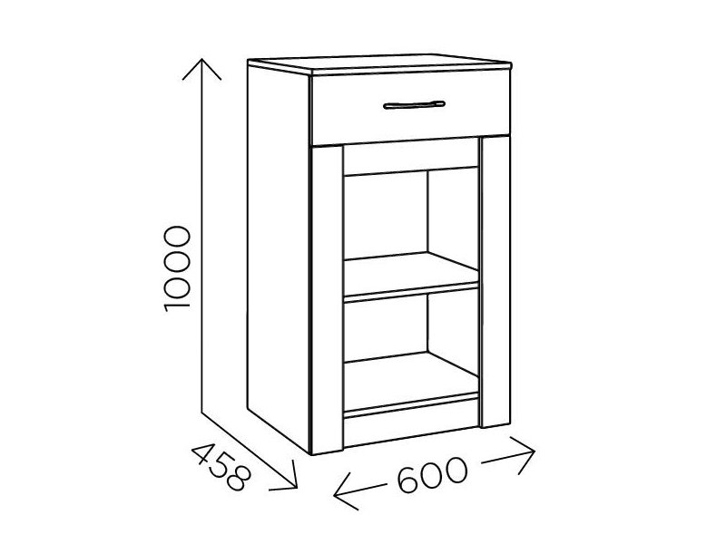 Кол-во ящиков — 1 ящик с шариковыми направляющими;