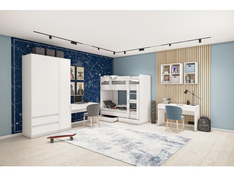 Особенности — 2 выкатных ящика в комплекте, универсальная сборка (лестница слева/справа). Безопасные радиусные углы открытых элементов защищают от травм.