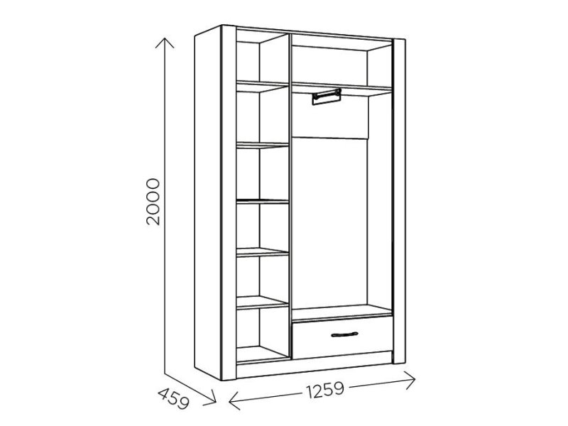 Внутреннее наполнение — полки, секция с вешалом (микролифт), ящик выдвижной