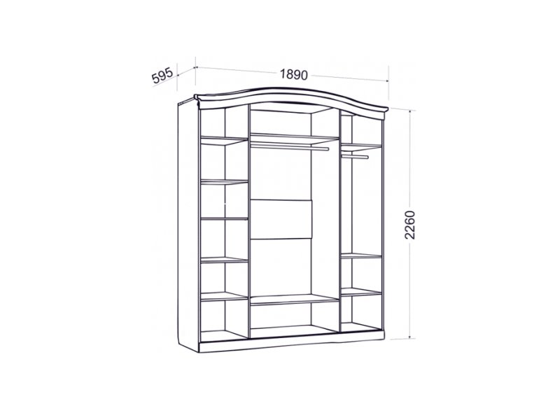 Внутреннее наполнение — 2 секции со штангой под плечики, секция с полками;