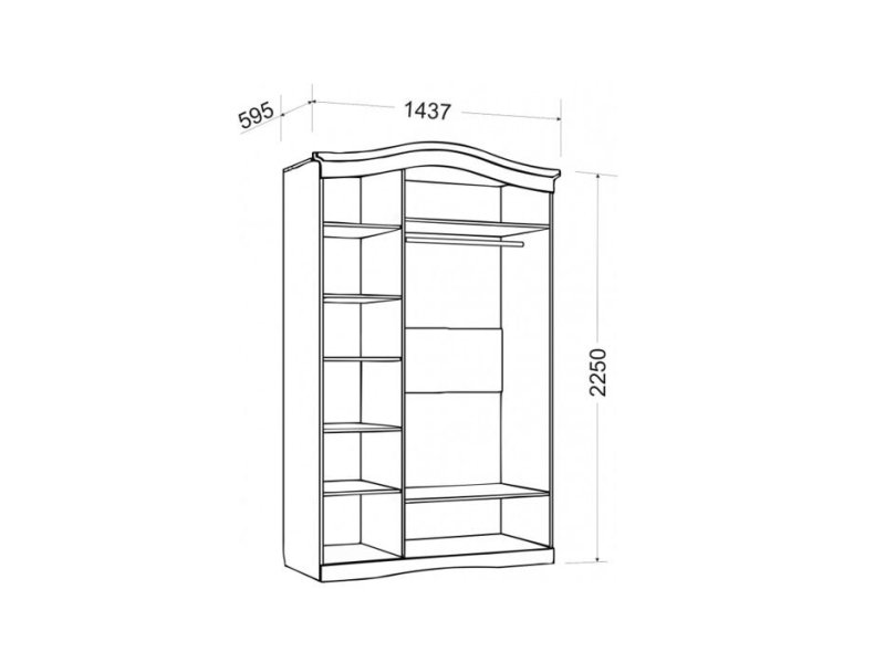 Внутреннее наполнение — секция со штангой под плечики, секция с полками;