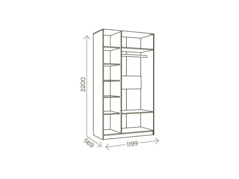 Внутреннее наполнение — секция с 6 полками, секция 2 полки и штанга под плечики