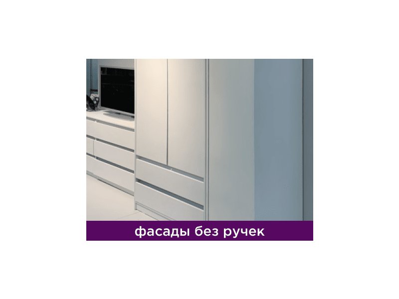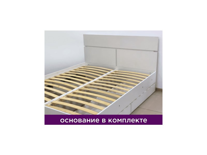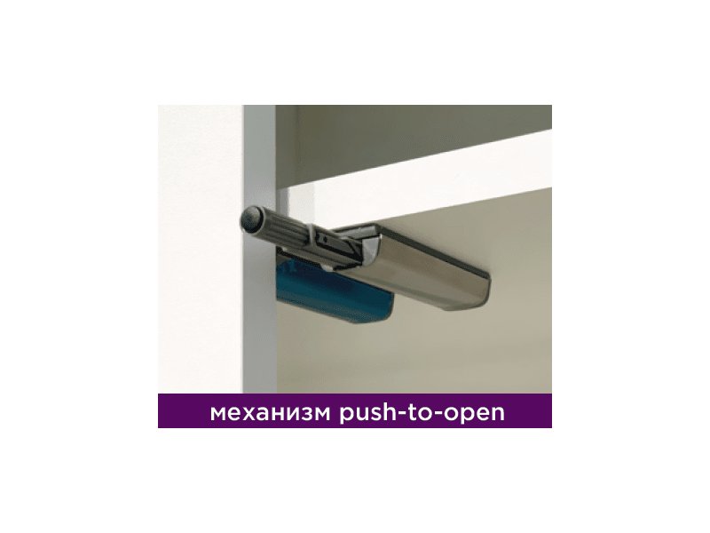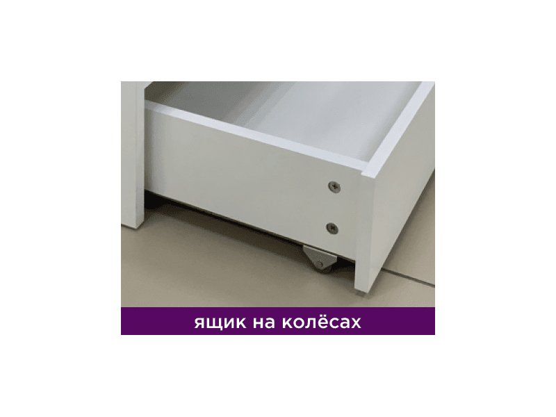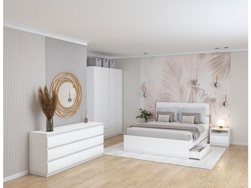 Материал корпуса — ЛДСП 16 мм; Материал фасадов — ЛДСП 16 мм; Кромка — ПВХ 0.45 мм, 2 мм; Цвет — белый; Ручки — без ручек, механизм открывания push to open; Опоры — пятниковые; Фурнитура — шариковые направляющие плавного хода, петли с доводчиками, push-to-open; Кровать — 3 размера 1200 / 1400 / 1600 х 2000 мм. Ортопедическое основание (ленточное) в комплекте. Выкатной ящик для кровати приобретается отдельно.