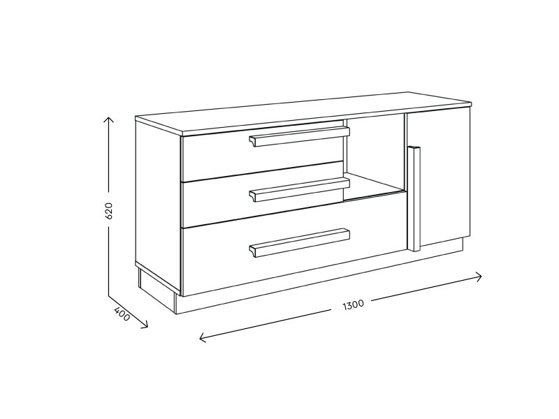 Ящики и полки — 3 выдвижных ящика, 1 распашной;