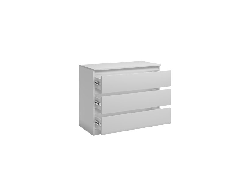 Комод изготовлен из ЛДСП с гладкой поверхностью, направляющие шариковые не полного выдвижения. Комод небольших размеров, но очень вместительный. Данная модель комода подойдет в детскую для вещей, игрушек; в спальню для белья, добавив зеркало, получится туалетный столик; в прихожую для мелочей; можно использовать, как тумба под телевизор. 3 выдвижных ящика глубиной 350 мм.