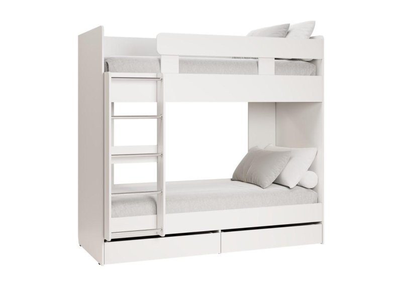 Особенности — 2 выкатных ящика в комплекте, универсальная сборка (лестница слева/справа). Безопасные радиусные углы открытых элементов защищают от травм.