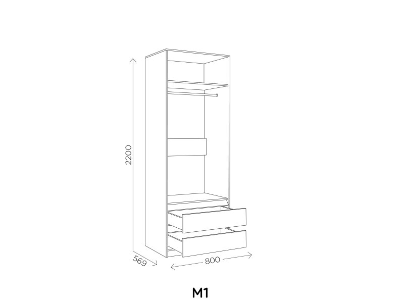 Внутреннее наполнение — Секция с вешалом (штанга), 2 выдвижных ящика;