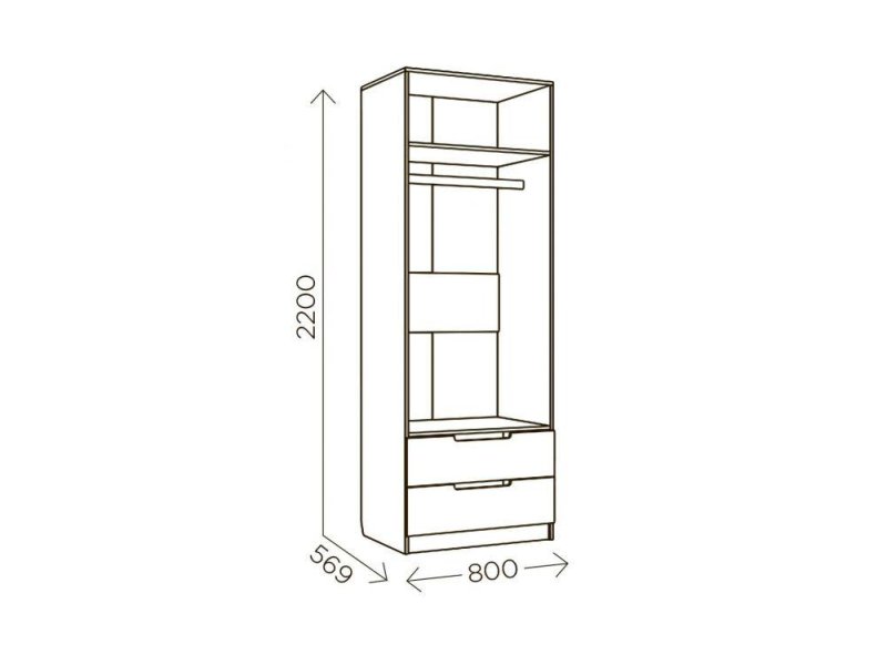 Внутреннее наполнение — секция с вешалом, 1 штанга, 2 выдвижных ящика